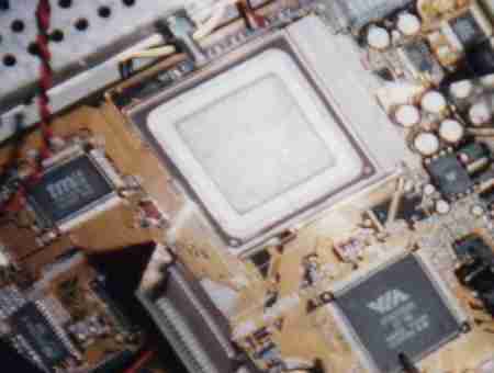 Der Rest war die warscheinlich schwerste Arbeit. - Das Aufspannen auf den Prozessor. Nach etlichen Versuchen sass; der absichtlich klein gewählte Gummie endlich auf dem Zielobjekt. |